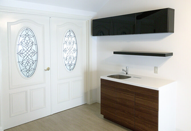 2階のサブキッチンはコンロ不要、シンプルでコンパクトなものを設置。