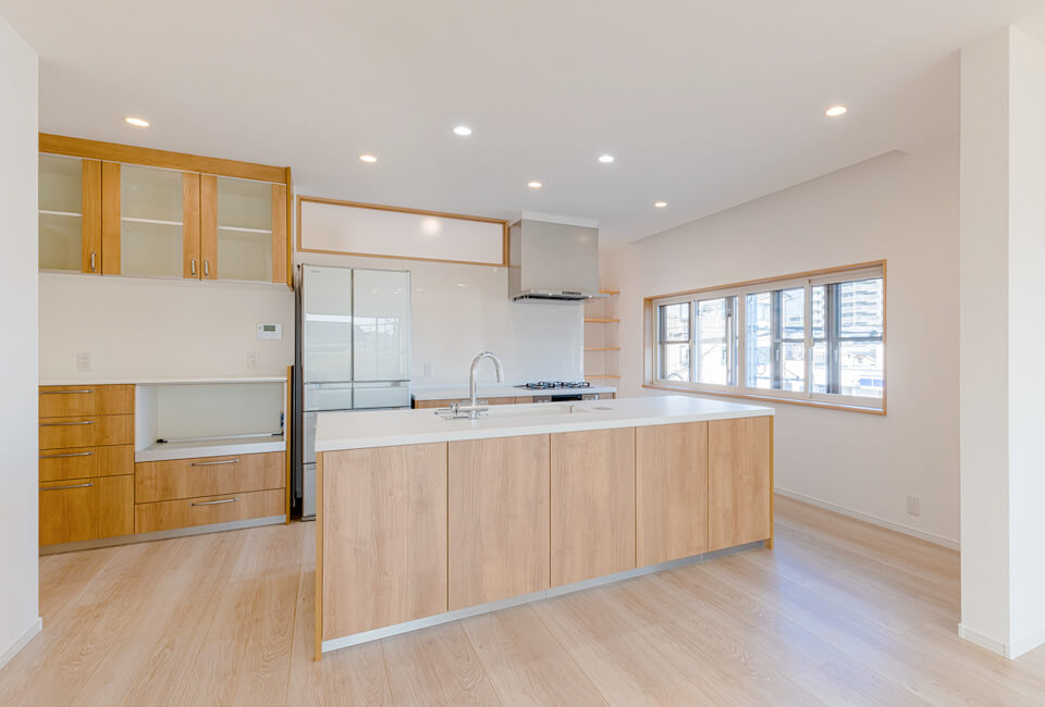 北寄りで寒くて暗かったリビング・キッチンを、日当たりの良い南向きに一新!