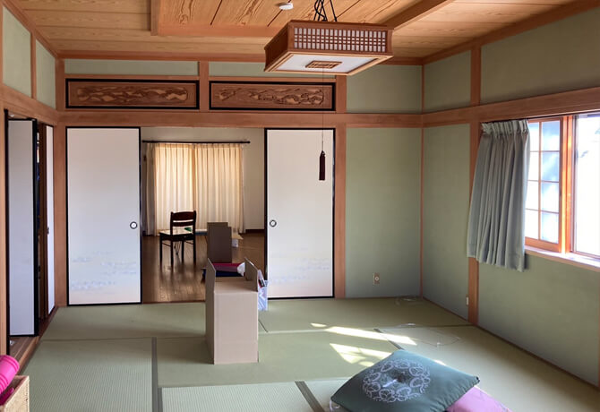 キッチンの隣に配した和室は、扉を開けると窓からの明るい日差しが差し込みます。